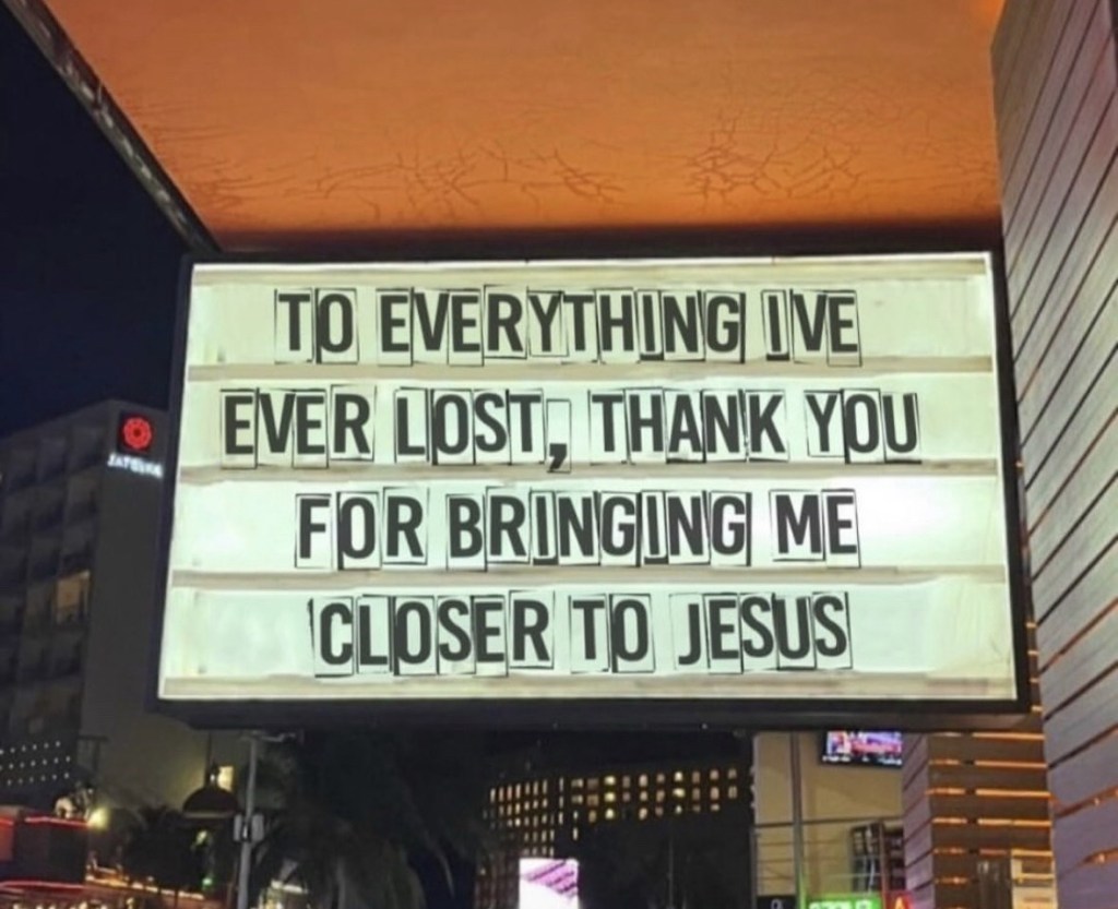 “To everything I’ve ever lost, thank you for bringing me closer to Jesus.”